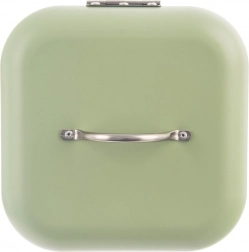 Pastelově zelený kovový korpus šetří místo na pracovní desce a současně chrání pečivo před pomačkáním.