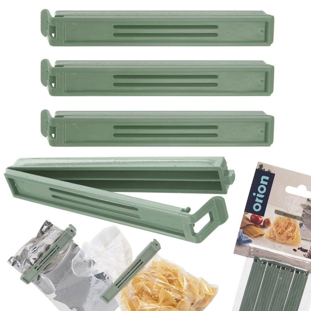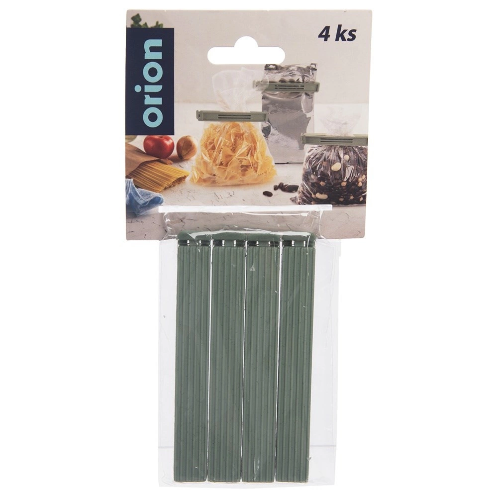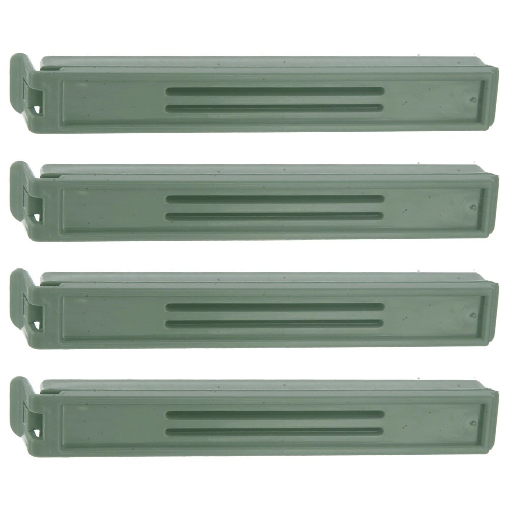 Sada 4 odolných klipsů na sáčky udrží vaše potraviny déle čerstvé a bezpečně uzavřené. Praktické zelené klipy s rozměry 11 × 1,5 cm snadno utěsní sáčky s kávou, kořením, těstovinami či mraženými potravinami a zabrání vysypání i přístupu vzduchu a vlhkosti.