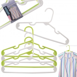 Vyrobeno z kvalitního plastu v bílé a světle zelené barvě, který se nedeformuje a odolá každodennímu používání. Díky kompaktním rozměrům 29,5 × 16,5 × 0,5 cm jsou ramínka přesně uzpůsobena dětským velikostem a pomáhají udržet pořádek a organizaci ve skříni.