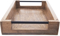 Objevte elegantní podnos z masivního dřeva mangovníku, který vyniká přírodní kresbou i dlouhou životností. Díky vyvýšeným okrajům a stabilní konstrukci snadno a bezpečně přenesete kávu, čaj, zákusky či malé občerstvení. Kovové rukojeti v černé barvě zajišťují pevný úchop a pohodlnou manipulaci.