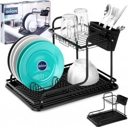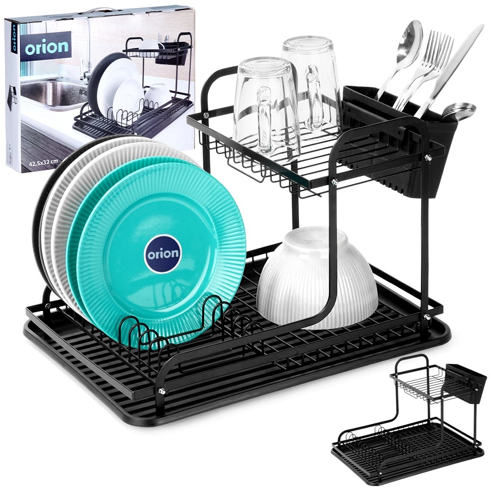 Praktický dvoupatrový odkapávač na nádobí RADKA v elegantní černé barvě šetří místo na lince a urychluje sušení. Nabízí vyjímatelný příborník se dvěma komorami, kapací tác pro odvod vody a organizované uložení talířů, sklenic a hrnků. Odolná kovová konstrukce v matném provedení a snadná údržba z něj dělají ideální volbu do moderních i klasických kuchyní.