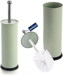 Praktická a odolná sada pro každodenní údržbu WC. Tělo stojánku je z kvalitního kovu v trendy pastelově zelené barvě, držák kartáče z nerezové oceli a husté bílé štětiny účinně čistí i hůře dostupná místa. Uzavřený design skrývá kartáč a pomáhá udržet koupelnu čistou a estetickou.