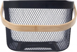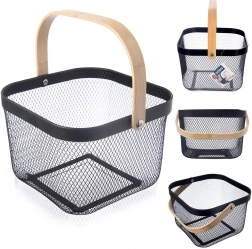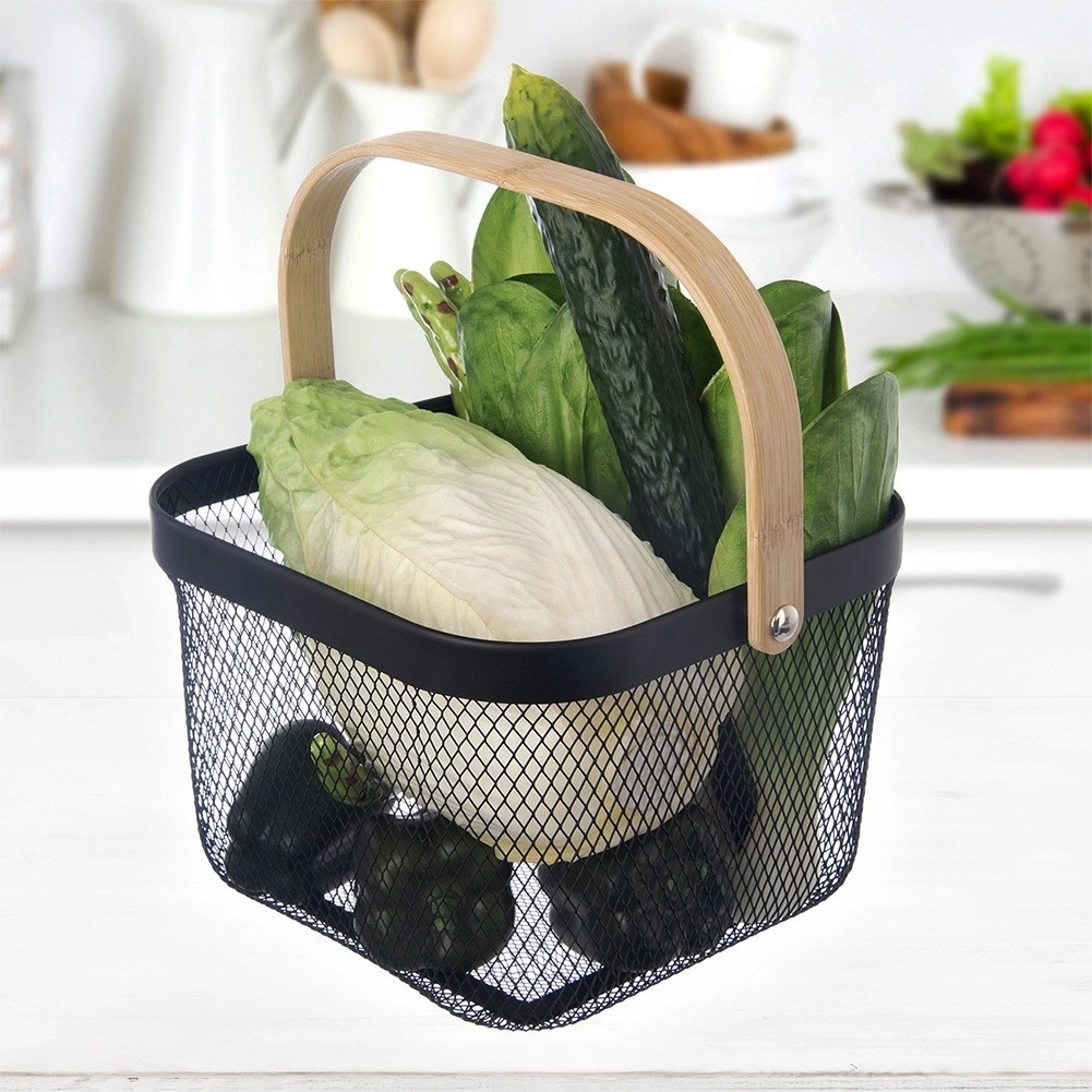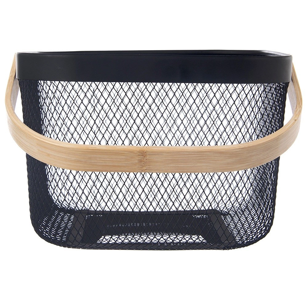 Tento praktický košík kombinuje odolnou kovovou síťovinu s pohodlným bambusovým madlem, takže se snadno přenáší a zároveň udrží pořádek v každé místnosti. Díky vzdušnému provedení je perfektní pro uchovávání ovoce a zeleniny, ale také pro přehledné uložení ručníků, kosmetiky i drobností.