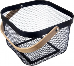 Elegantní černý design zapadne do moderních i skandinávských interiérů a poslouží jako praktická dekorace. Externí rozměry košíku jsou 27 × 24,5 × 17,5 cm, bez rukojeti 24,5 × 24,5 cm – ideální velikost na kuchyňskou linku, koupelnovou desku i polici v obýváku.