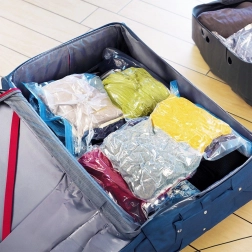 Vakuové pytle zmenší objem oblečení až o 70 %, takže do kufru i skříně zabalíte více a udržíte perfektní pořádek.