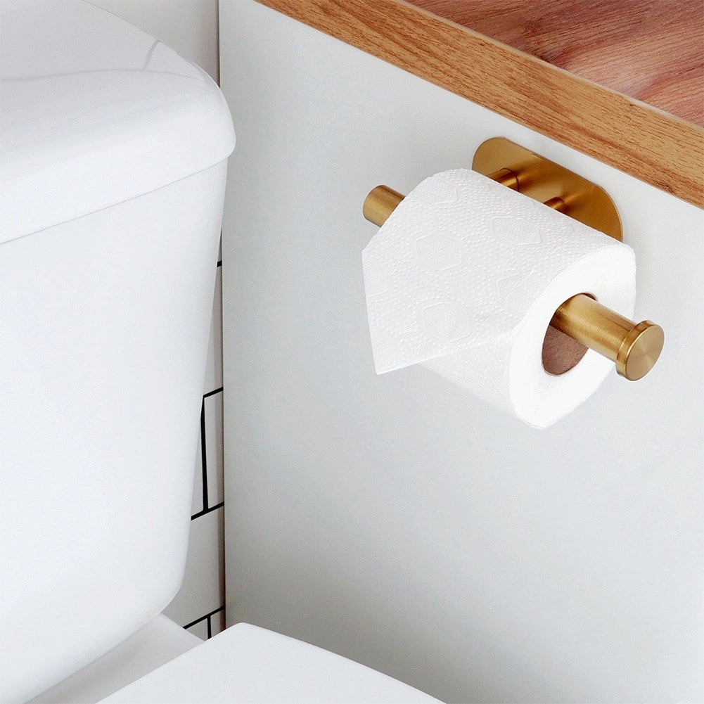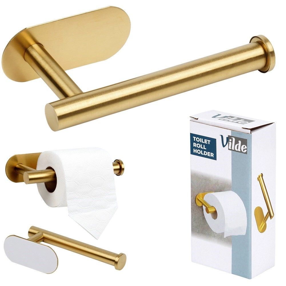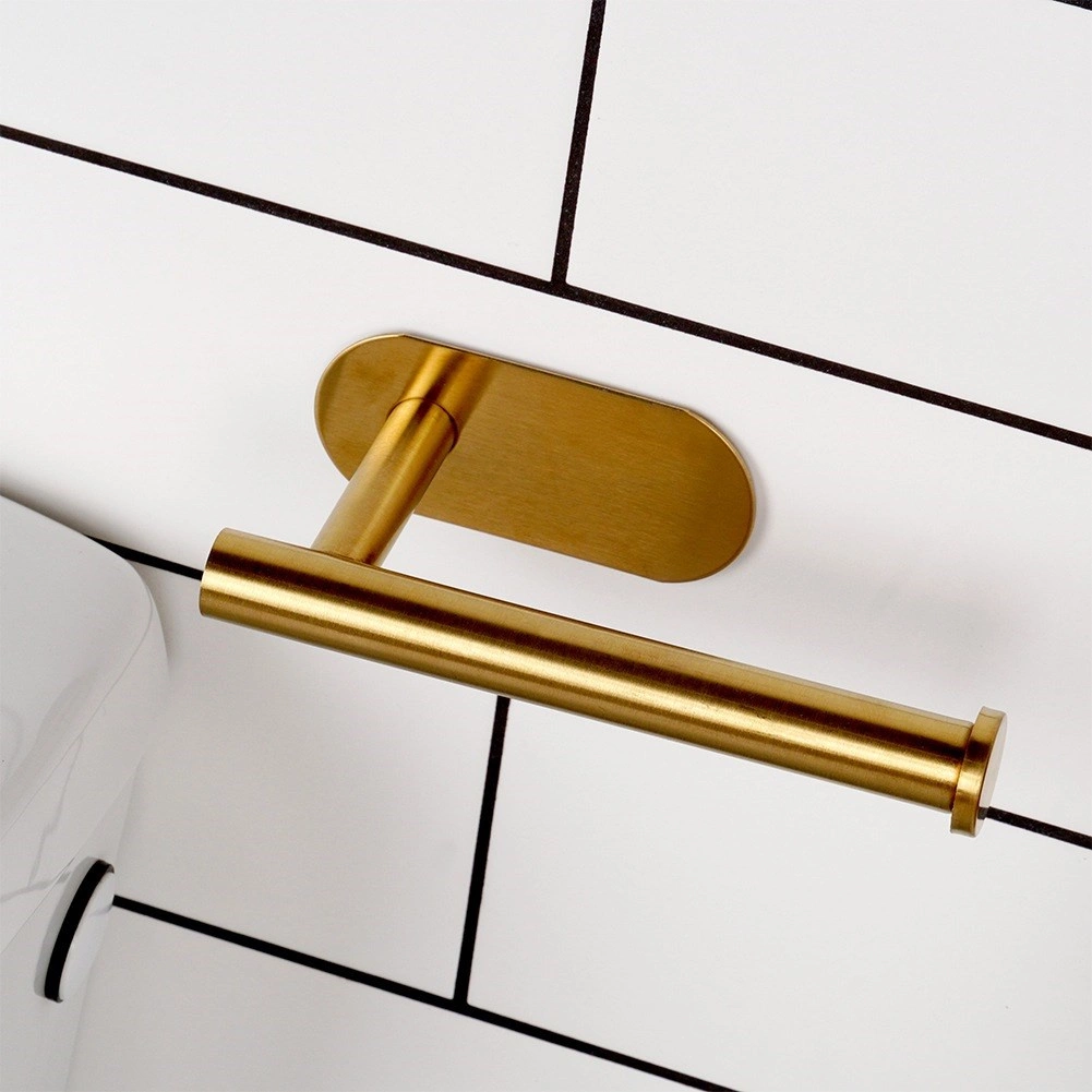 Elegantní držák na toaletní papír ze nerezové oceli v zlatém provedení přináší do koupelny styl i praktičnost. Kompaktní rozměry 16,5 × 7,7 × 4,5 cm zajišťují pohodlné používání, dlouhá životnost a snadná výměna rolí potěší v každodenním provozu. Jednoduchá montáž na rovný povrch pomocí oboustranné pásky v balení.