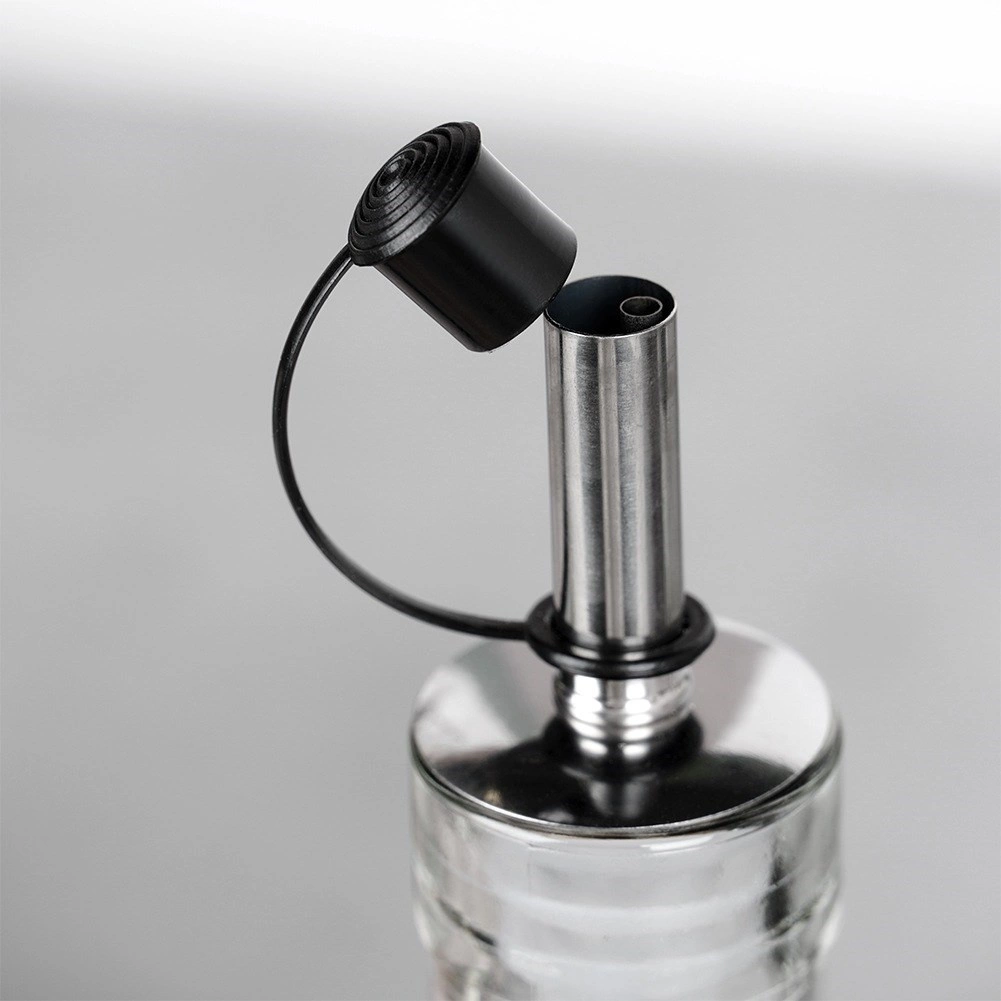 Nerezová hubice se zátkou umožňuje kontrolovaný tok bez kapání – ideální pro dochucování a servírování.