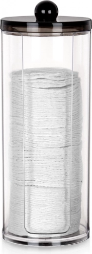 Praktický dávkovač na kosmetické tamponky z čirého akrylu s pohodlným víčkem chrání před prachem a udržuje koupelnu upravenou. Díky průhlednému tělu máte o stavu zásob vždy přehled a díky širokému hrdlu je doplňování rychlé a snadné. Moderní design, pohodlné dávkování a kompaktní rozměry dělají z tohoto doplňku ideální volbu pro každodenní péči.