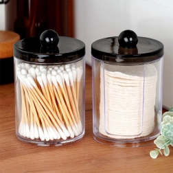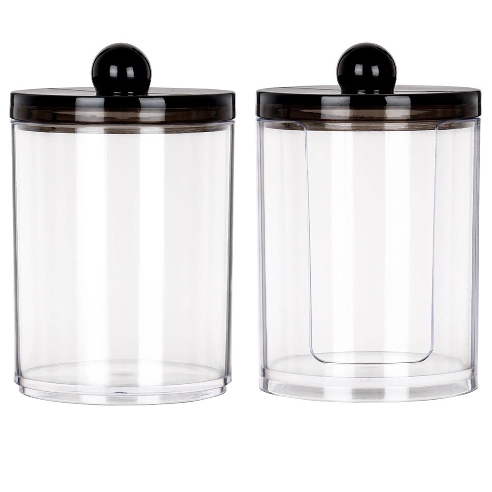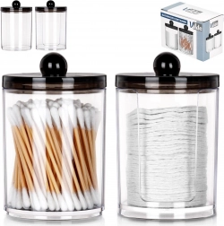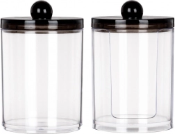 Minimalistické provedení v čiré a černé barvě se perfektně hodí na umyvadlovou desku, kosmetický stolek i do skříňky. Široký otvor usnadní rychlé doplňování, lehký a odolný akryl zajistí snadnou údržbu a dlouhou životnost.