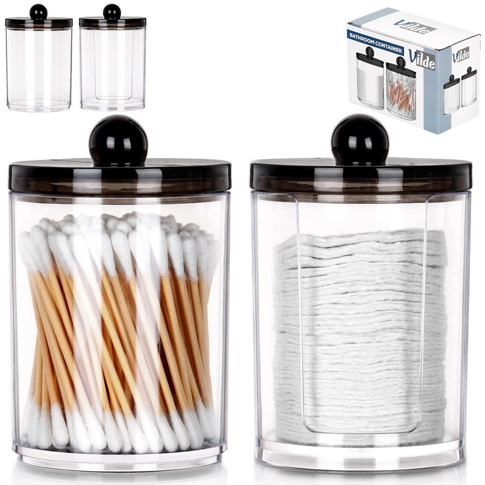Čiré stěny z odolného akrylu umožňují kontrolu zásob a elegantní černé víko dodá vaší koupelně moderní akcent.