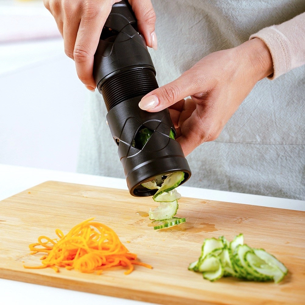 Připravte zeleninové špagety i dekorativní spirály do salátů, asijských pokrmů a efektních příloh – stačí jen vložit zeleninu a otáčet.