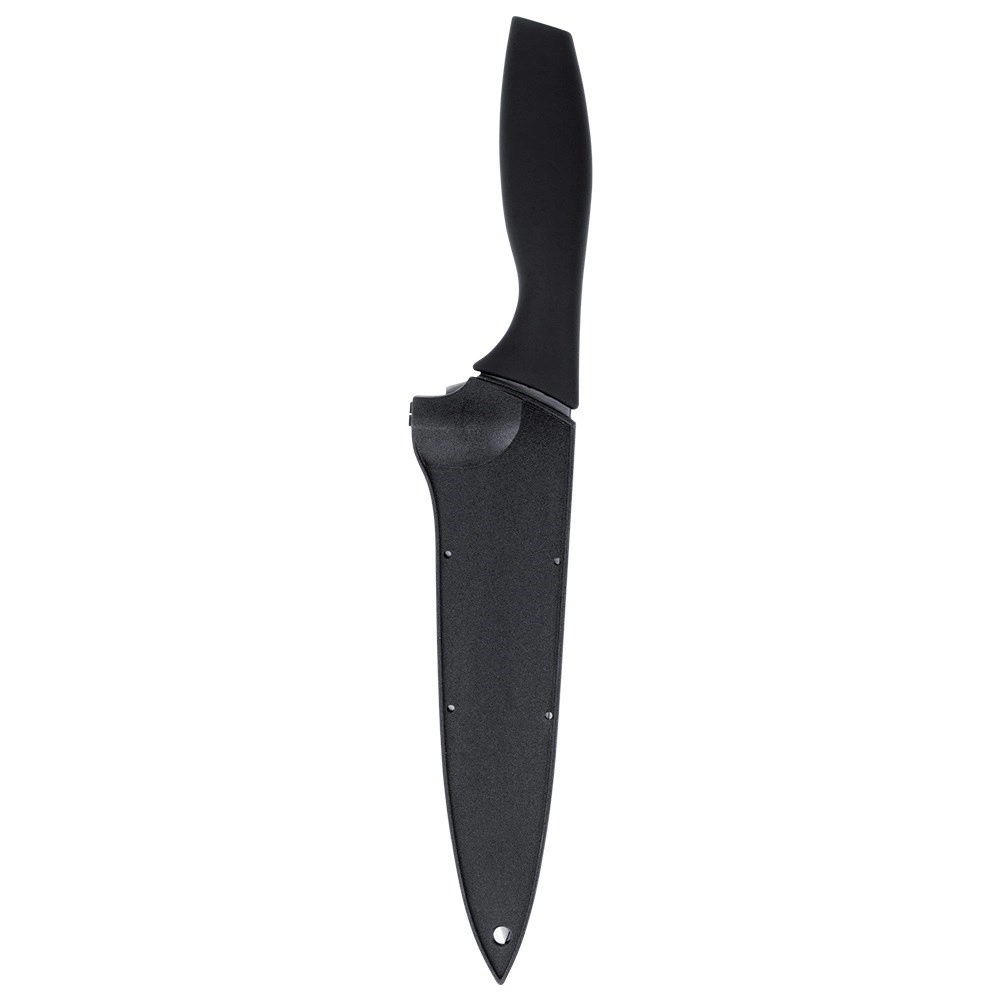 Pevná plastová ochrana chrání ostří před poškozením a vás před náhodným poraněním při ukládání nebo přenášení nože.