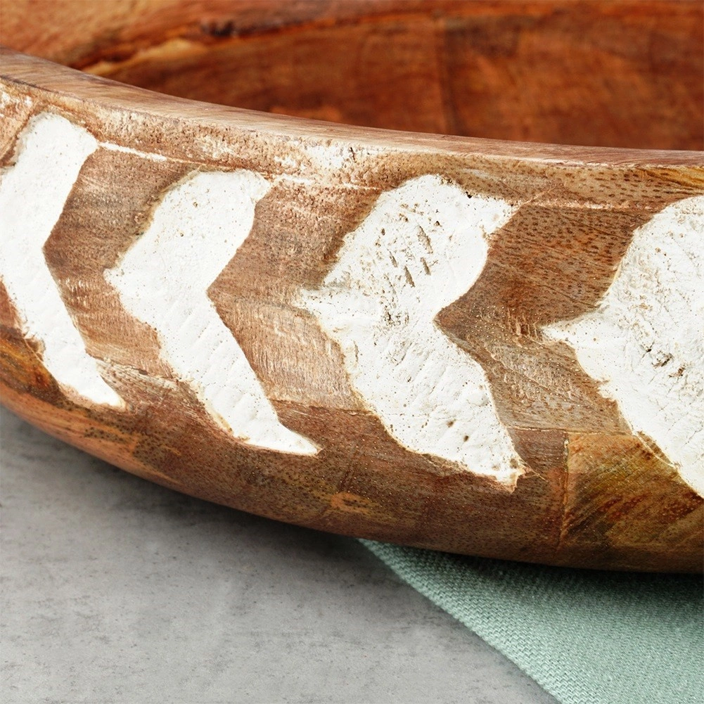 Originální chevronový vzor zvýrazňuje přirozenou kresbu mangového dřeva a dělá z misky stylový doplněk pro servírování i dekor.