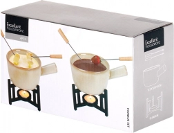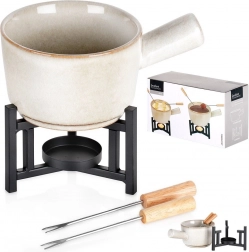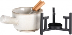 Tato kompaktní sada na fondue kombinuje kvalitní porcelán v jemném béžovém tónu s odolným kovovým stojanem v matné černé. Miska se rychle zahřívá a dlouho udržuje teplotu, takže si můžete vychutnat rozpuštěnou čokoládu, sýr i další teplé dipy přesně tak, jak je máte rádi.