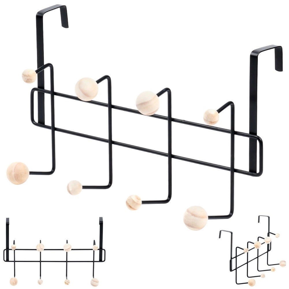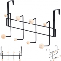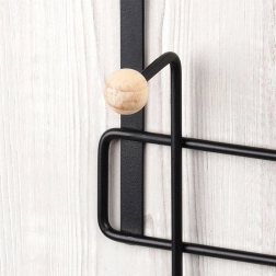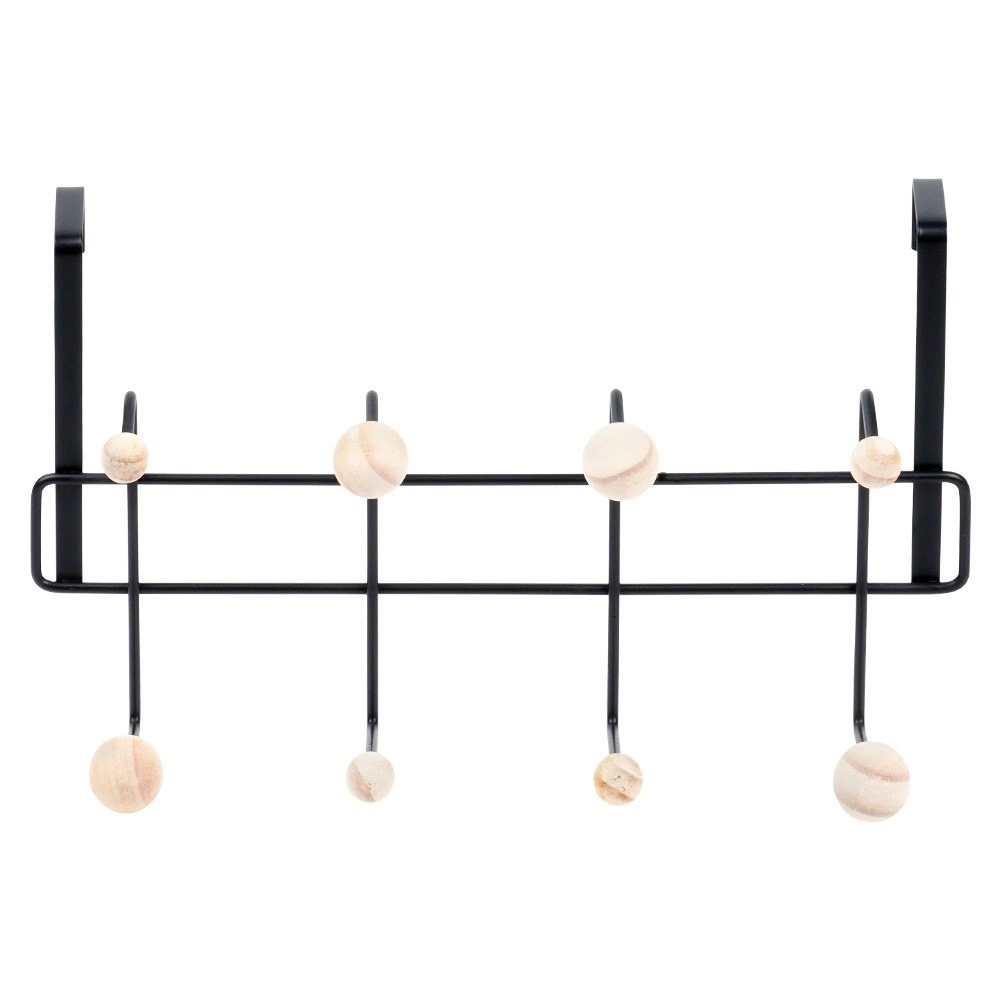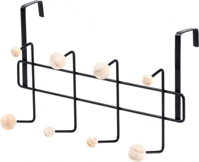 Praktický závěsný věšák na dveře s 8 háčky šetří místo a okamžitě zlepší organizaci v předsíni, koupelně či ložnici. Kombinace odolného černého kovu a přírodních dřevěných knopků chrání textilie před zatržením, nabízí bezvrtací montáž a padne na dveře do šířky 4,5 cm.