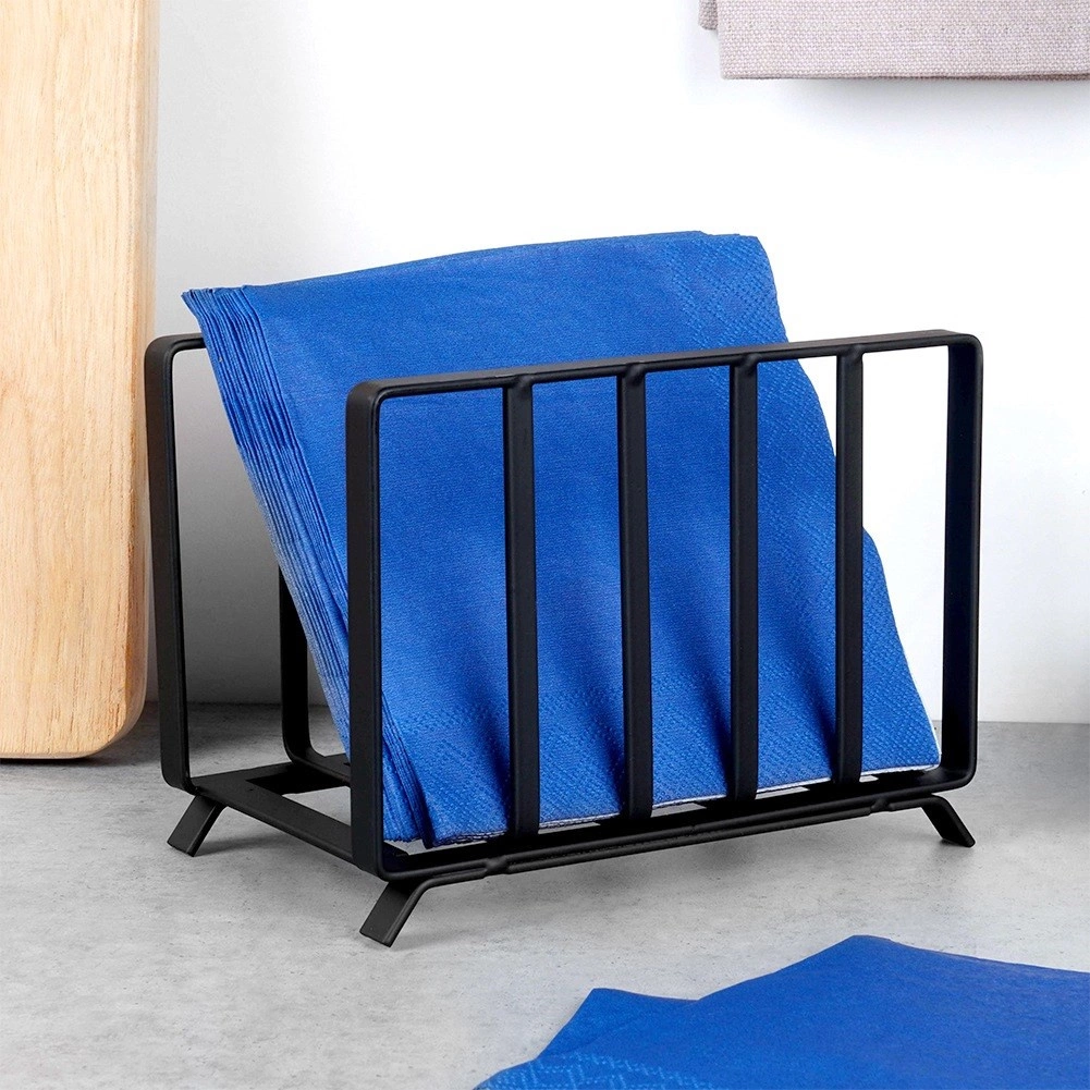 Stojan na ubrousky Misty kombinuje funkčnost a styl. Je vyroben z kvalitního kovu s černým matným práškovým lakem, který je odolný proti poškrábání a snadno se udržuje. Otevřená konstrukce drží ubrousky vzpřímeně a umožňuje jejich rychlé a pohodlné odebírání.