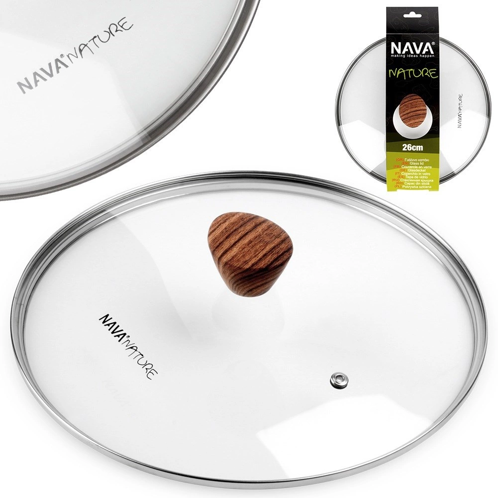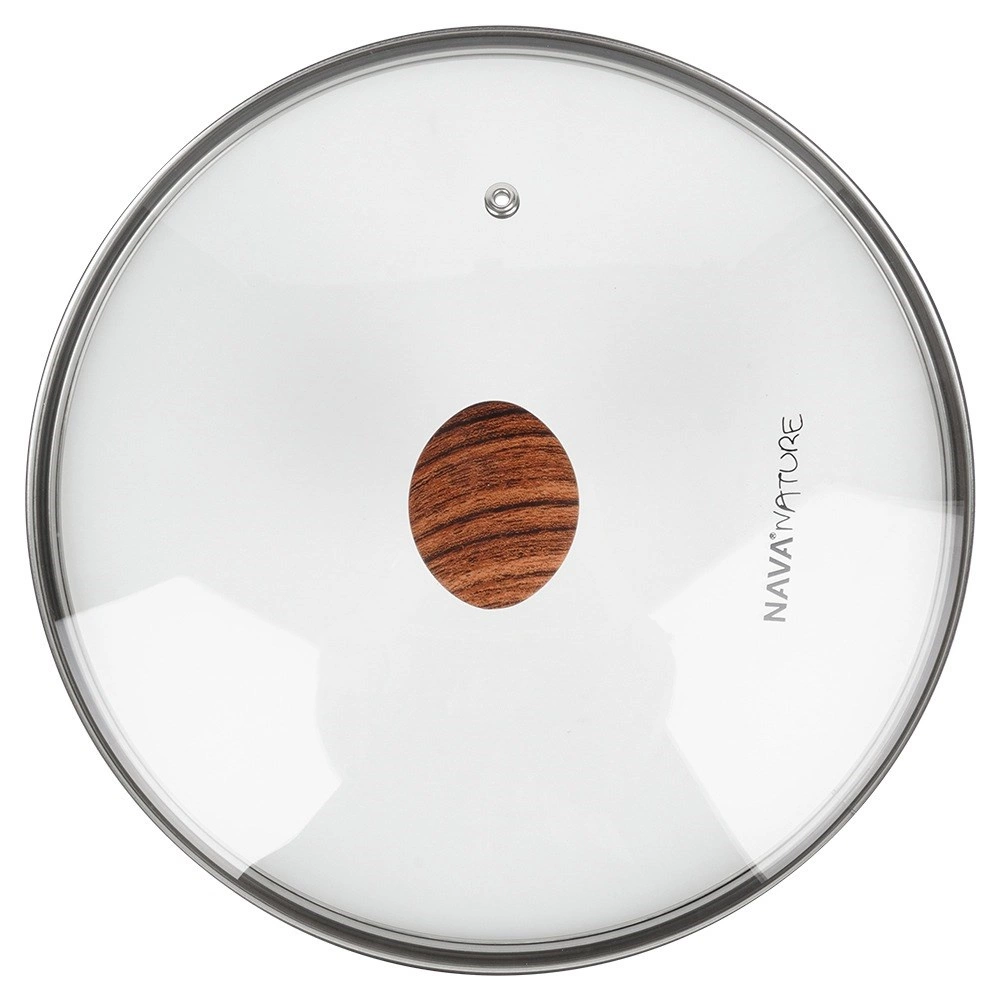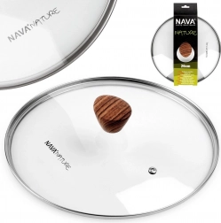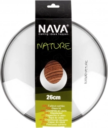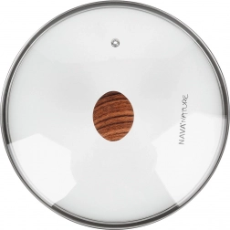 Skleněná poklice NATURE 26 cm je praktický doplněk pro hrnce, pánve i rendlíky stejného průměru. Odolné žáruvzdorné sklo s nerezovým lemem vyniká dlouhou životností a elegantním vzhledem, zatímco ergonomický úchyt v dekoru dřeva je příjemný na dotek a dobře se drží.