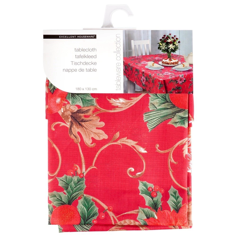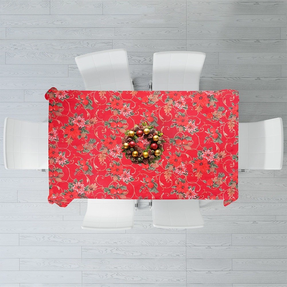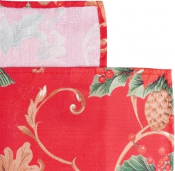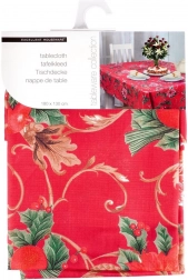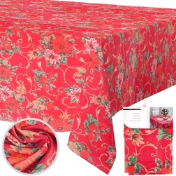 Vneste na svůj jídelní stůl kouzlo Vánoc. Červený ubrus se svátečním vzorem v zeleno-zlatých tónech okamžitě zútulní interiér a zvýrazní vaši sváteční tabuli. Díky plamoodporné/nešpinivé úpravě snadno setřete běžné nečistoty a ubrus si dlouho zachová krásný vzhled.