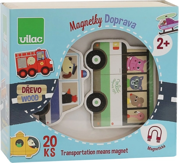 Set dřevěných magnetek s motivy dopravních prostředků, ideální pro dekoraci dětského pokoje nebo lednice. Vyrobeno ekologicky a šetrně k životnímu prostředí.