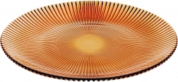 Stylový skleněný dezertní talíř o průměru 21 cm v teplém jantarovém tónu dodá prostírání elegantní nádech. Je vyroben z odolného skla s výraznou radiální texturou, která zlepšuje úchop i vzhled. Ideální na podávání zákusků, předkrmů či snídaní. Elegantní design, jantarová barva, odlné sklo a snadná údržba pro každodenní i sváteční použití.