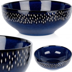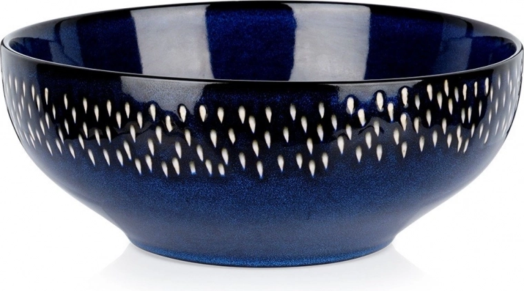 Elegantní keramická salátová mísa o objemu 2,8 l a průměru 25 cm v hluboké tmavě modré glazuře s dekorativním vzorem kapek. Vyrobená z odolného gresu, vhodná do myčky i mikrovlnky, ideální pro saláty, těstoviny i servírování pochutin. Stylový doplněk každé tabule s dlouhou životností a snadnou údržbou.