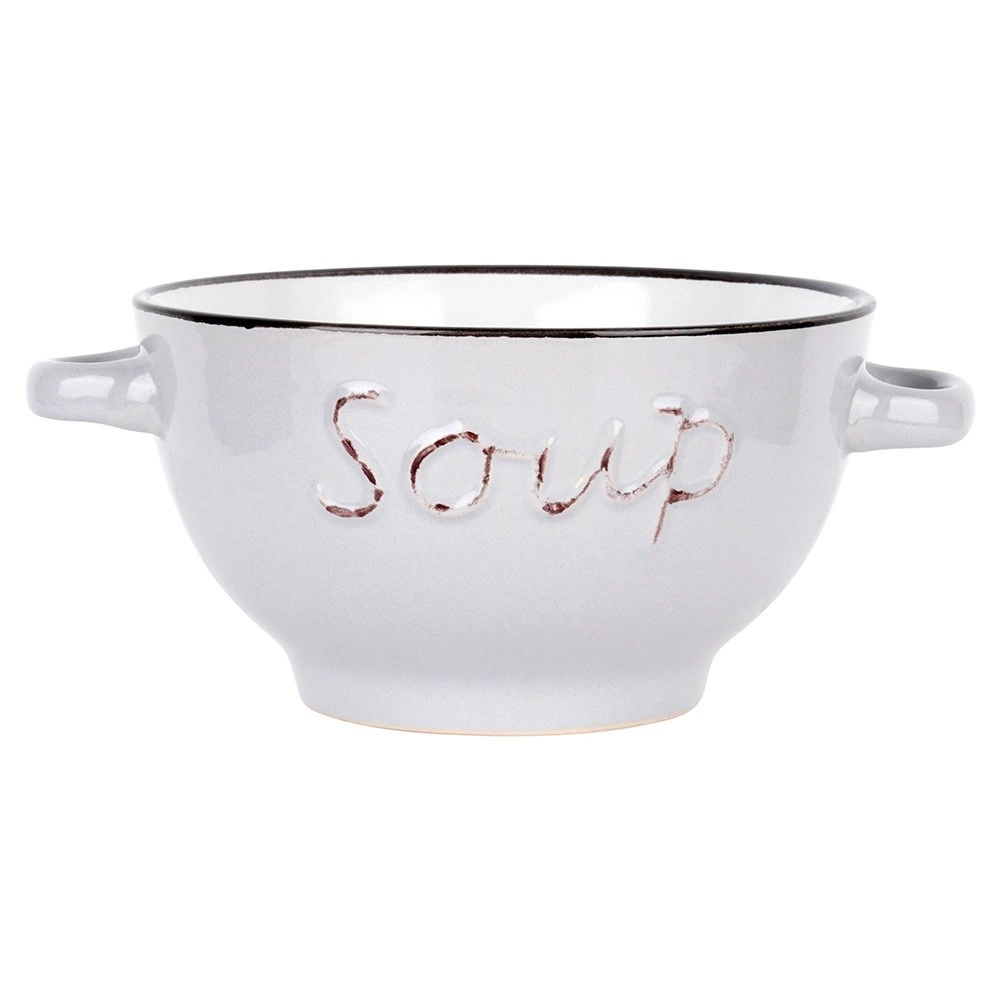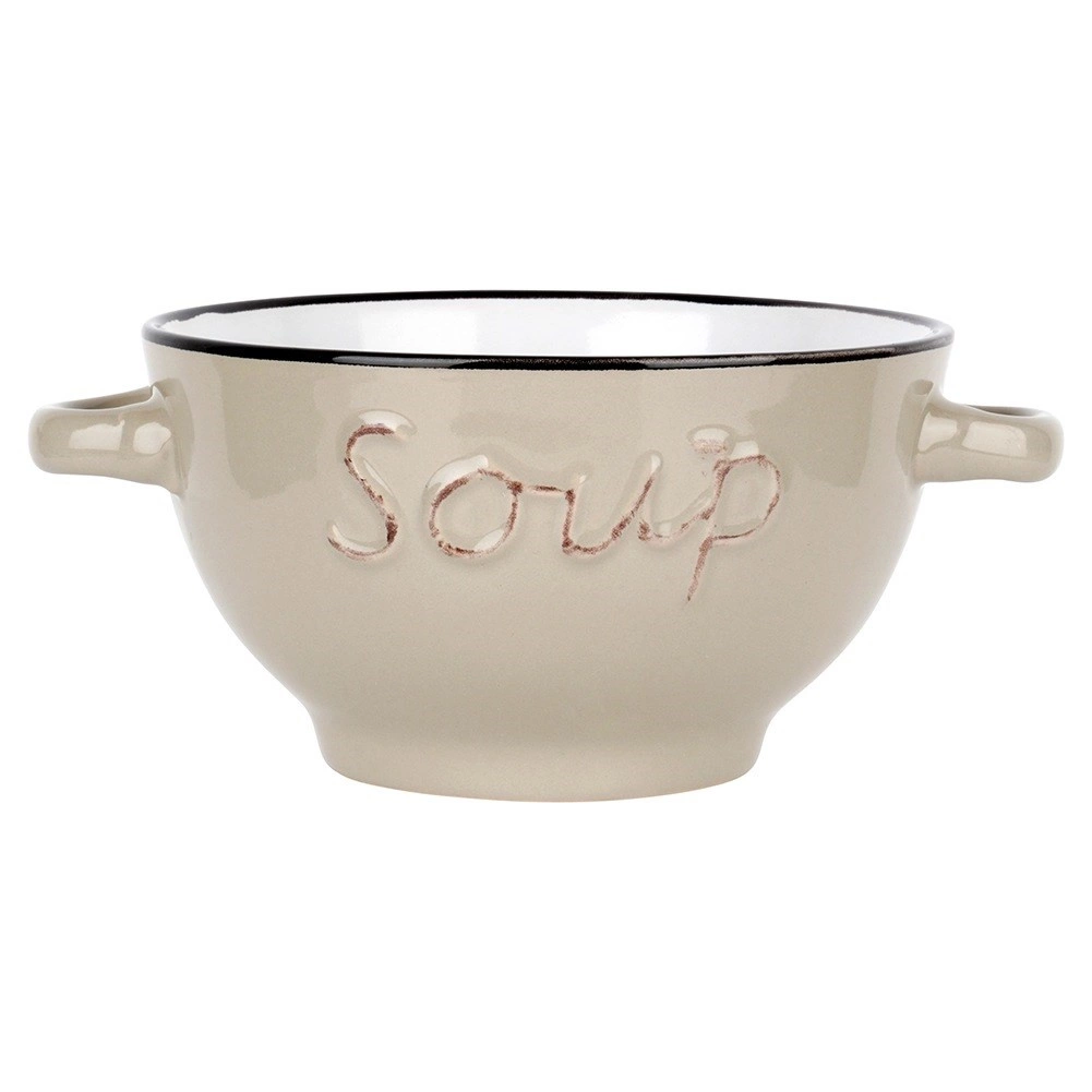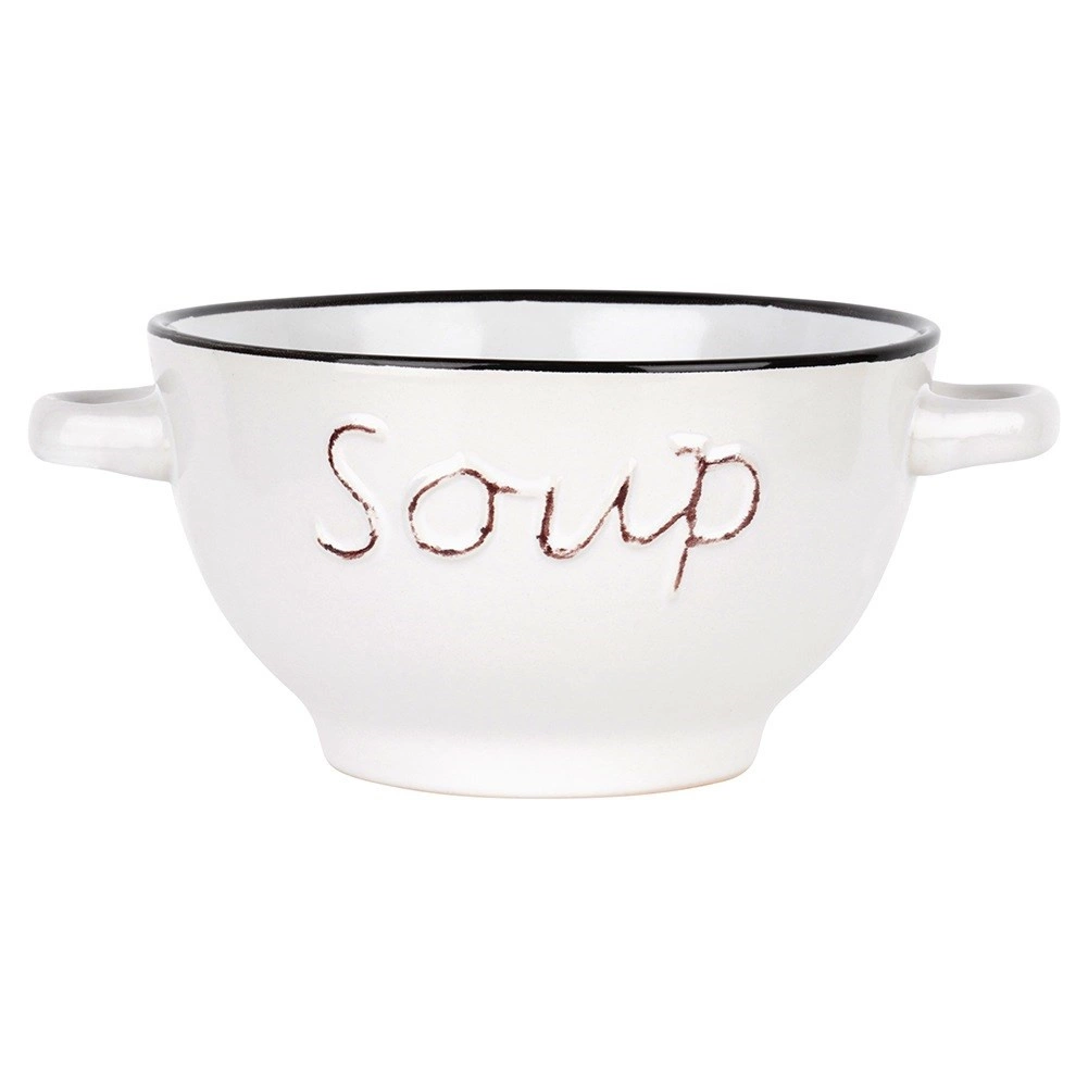Objevte univerzální sadu misek, které skvěle poslouží na polévky, vývary a krémy, ale také na cereálie, jogurt, ovoce či snacky. Nadčasový tvar, kontrastní okraj a reliéfní nápis dodají prostírání elegantní nádech a snadno ladí s jakoukoli výbavou kuchyně.