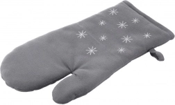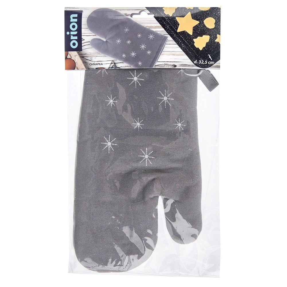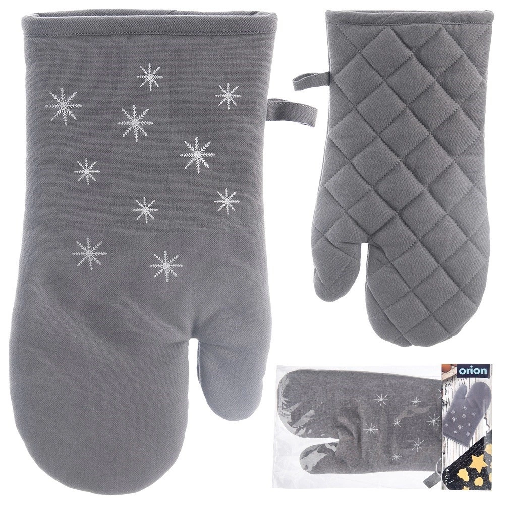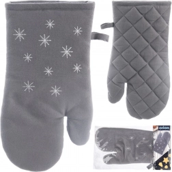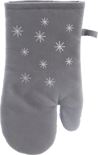 Tato bavlněná kuchyňská rukavice v šedé barvě s jemným motivem sněhových vloček je skvělá pro každodenní použití. Poskytuje účinnou ochranu před vysokou teplotou při manipulaci s horkým nádobím a plechy. Univerzální rozměr 17 × 32,5 cm zajistí pohodlné nošení na obě ruce.
