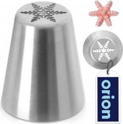Vytvářejte dokonale propracované zimní dekorace s touto ruskou cukrářskou špičkou ve tvaru sněhové vločky. Odolná nerezová ocel, kompatibilita se všemi cukrářskými sáčky a snadné čištění v myčce z ní dělají ideální volbu pro zdobení dortů, koláčů i cupcakes.