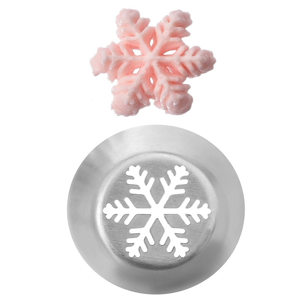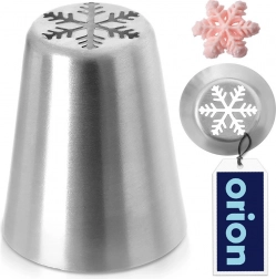 Univerzální cukrářská tryska z nerezové oceli pro tvorbu dekorací ve tvaru sněhové vločky. Ideální na dorty, zákusky a cupcakes, pasuje na běžné cukrářské sáčky, je odolná, zdravotně nezávadná a vhodná do myčky.