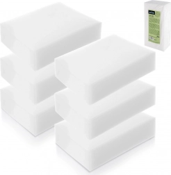 Všestranné použití v domácnosti: plast (rámy, vypínače), keramika (umyvadla, obklady), nerez (dřezy, spotřebiče), sklo a lakované povrchy. Skvěle fungují i na stěny – odstraní šmouhy, otěry obuvi a kresby pastelkami či fixy. Každá houbička: 10 × 7 × 3 cm.