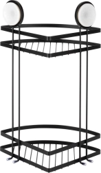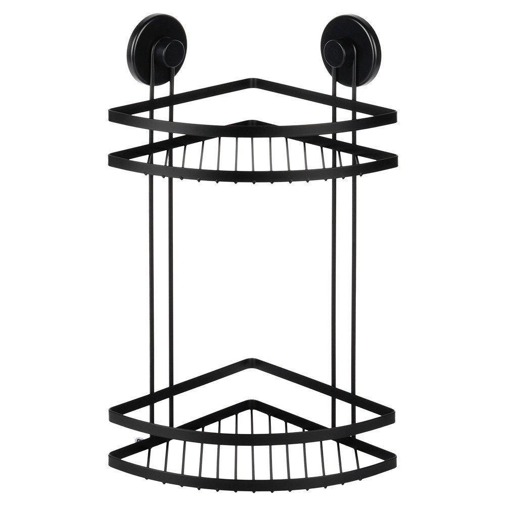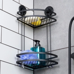 Praktická rohová sprchová polička s dvěma úrovněmi a montáží na přísavky udrží vaše kosmetické potřeby vždy po ruce. Odolná konstrukce z kovu v matné černé, bez vrtání, snadná instalace a nosnost až 3,5 kg z ní dělají ideální řešení pro organizaci koupelny.