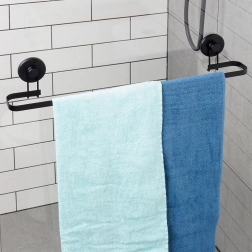 Tento minimalistický držák na ručníky v matné černé barvě kombinuje čistý design a každodenní funkčnost. Díky dvěma velkým přísavkám jej snadno a rychle připevníte na hladké povrchy, jako je sklo nebo obklady, bez nutnosti vrtání – vaše zdi tak zůstanou neporušené.