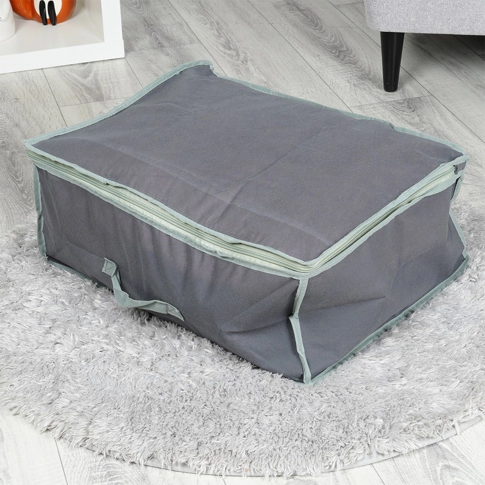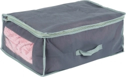 Praktický úložný vak na ložní prádlo, deky, polštáře i oblečení o objemu 38 l chrání vaše textilie před vlhkostí, prachom a molami. Díky zipovému uzavírání, transparentnímu okénku pro rychlý náhled a pevné rukojeti je ideální do skříně i pod postel. Odolná polyetserová tkanina v šedé barvě zajistí dlouhou životnost a čistý vzhled.
