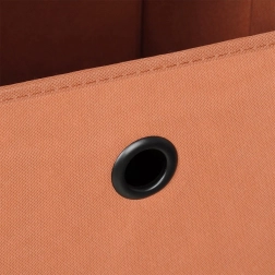 Skládací textilní koše v neutrálních barvách s kovovým očkem pro snadné vytahování. Ideální na oblečení, hračky či doplňky.