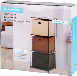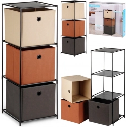 - Volně stojící kovový regál s látkovými boxy