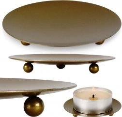 Objevte stylový a funkční doplněk pro váš domov – kovový podstavec na svíčky v matné zlaté. Nízký talířek na třech kulových nožkách zajišťuje výbornou stabilitu a lehké nadzdvihnutí nad povrch, což pomáhá odvádět teplo a chránit nábytek před voskem a žárem. Minimalistický vzhled snadno sladíte s jakýmkoli stylem interiéru.