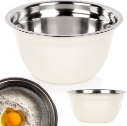 Tato praktická miska z kvalitní nerezové oceli kombinuje nadčasový design s vysokou odolností. Bílý vnější povrch působí elegantně, zatímco leštěný vnitřek usnadňuje čištění a je hygienický. Hluboký, zaoblený tvar a rozšířený okraj zajišťují pohodlné míchání i přelévání.