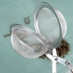 Klešťový mechanismus umožňuje rychlé naplnění a bezpečné uzavření sítka – ideální pro každodenní přípravu sypaného čaje.