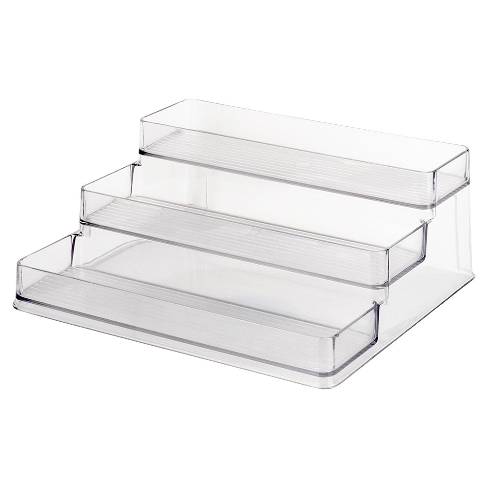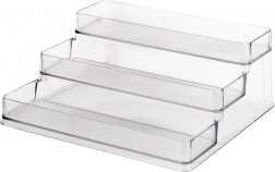 Tato univerzální třípatrová organizér-police z čirého plastu okamžitě zlepší pořádek a viditelnost ve vaší kuchyni, koupelně či spižírně. Transparentní materiál umožňuje rychle najít potřebnou surovinu nebo kosmetiku, zatímco stupňovitá konstrukce šetří místo a zvyšuje kapacitu.