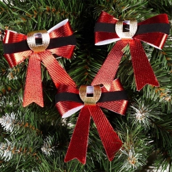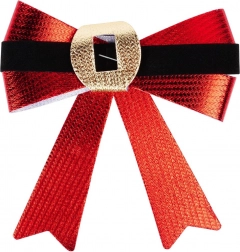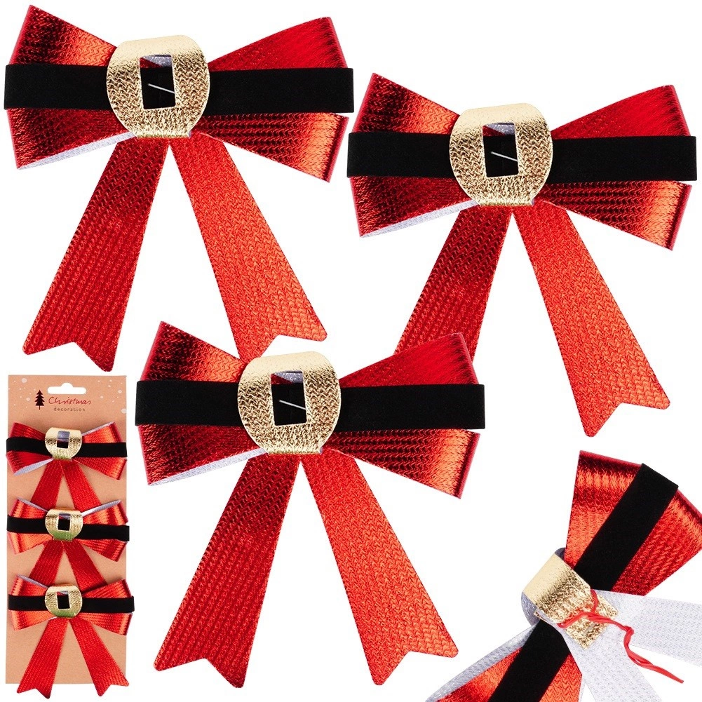 Vneste do domova kouzlo Vánoc s touto sadou 3 dekorativních mašlí. Červený metalický lesk, kontrastní sametově černý pásek a zlatý akcent připomínající přezku působí elegantně a dokonale ladí s klasickými i moderními dekoracemi.