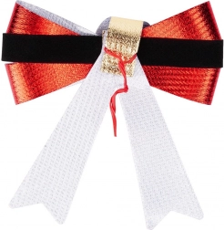 Elegantní sada tří vánočních mašlí o rozměru 10 × 10 cm dodá vašim svátečním dekoracím okamžitý lesk. Mašle v červeném metalickém provedení s černým páskem a zlatou „sponou“ evokují klasický vánoční styl. Jsou lehké, snadno se upevňují pomocí drátku a hodí se na stromek, věnce, zábradlí i okna. Díky kvalitnímu materiálu jsou odolné, opakovaně použitelné a vytvoří festivní atmosféru v každém interiéru.