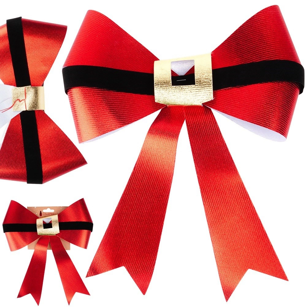 Vytvořte doma i v práci kouzelnou sváteční atmosféru. Tato velká vánoční mašle v lesklé červené barvě s černým „páskem“ a zlatou sponou připomíná Santův opasek, takže okamžitě zaujme a zvýrazní každý interiér i exteriér.