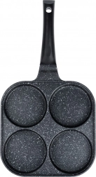 Praktická granitová pánev se čtyřmi kulatými formami o průměru 10 cm pro dokonale tvarovaná volská oka, lívance a mini palačinky. Díky nepřilnavému povrchu PFLUON GRANIT připravíte jídla s minimem tuku, rychle a rovnoměrně. Vhodná na plyn, elektřinu, keramiku, halogen i indukci, snadno se čistí a lze ji mýt v myčce.