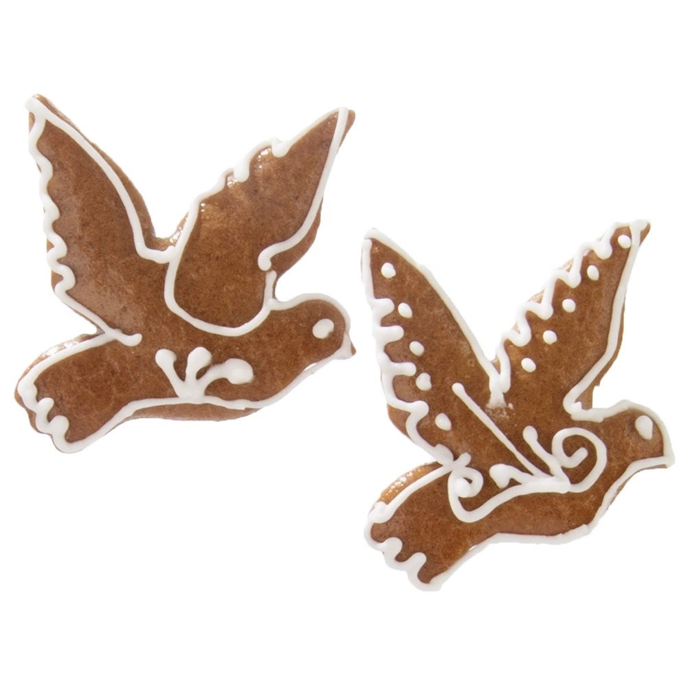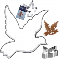 Praktické nerezové vykrajovátko ve tvaru holubice se křídly pro snadné vytváření sušenek, perníčků a dekorací z fondánu. Díky rozměrům 6 × 5 cm a pevné nerezové oceli řeže čisté obrysy, má univerzální využití v kuchyni a je vhodné do myčky.