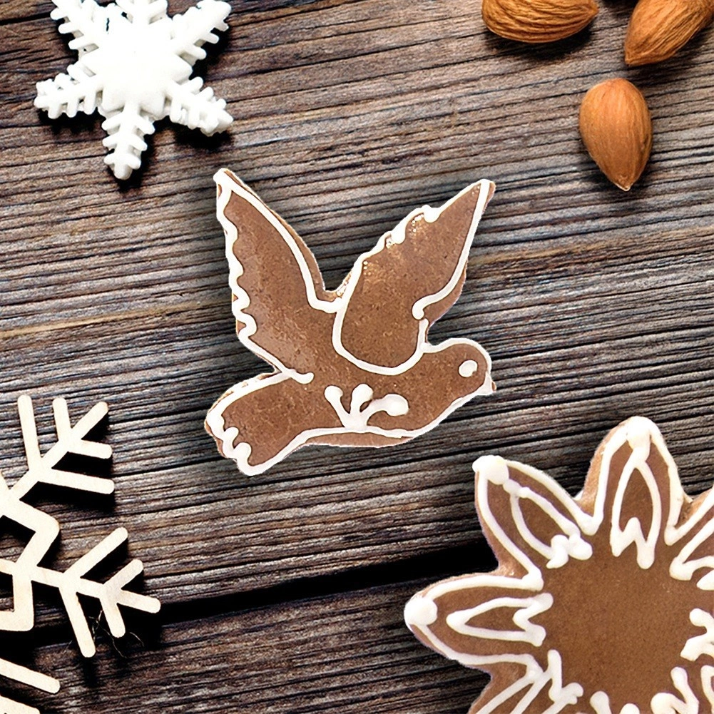 Vytvořte působivé sušenky a perníčky ve tvaru holubice – symbolu míru a svatební elegance. Vykrajovátko z kvalitní nerezové oceli si poradí s těstem, fondánem i marcipánem a udrží přesný tvar díky pevným, hladkým hranám.