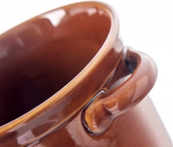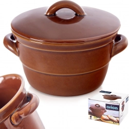 Univerzální keramický hrnec s víkem v tradičním hnědém provedení je skvělý pomocník pro každodenní kuchyni. Neprůsvitná glazovaná keramika pomáhá udržet stabilní teplotu a vytváří ideální podmínky pro kvašení a zrání, díky čemuž si potraviny zachovají svou chuť a kvalitu.