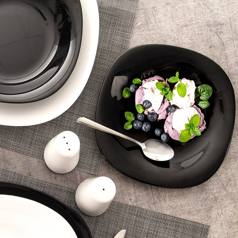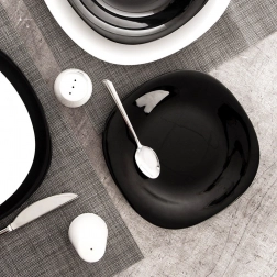 Vytvořte si stylově prostřený stůl s černým dezertním talířem LUNA. Kvalitní sklo opálové připomíná vzhledem porcelán, je odolné při každodenním používání a snadno se udržuje. Minimalistický, ale výrazný design podtrhne servírování dortů, koláčů, dezertů i drobných pochoutek.