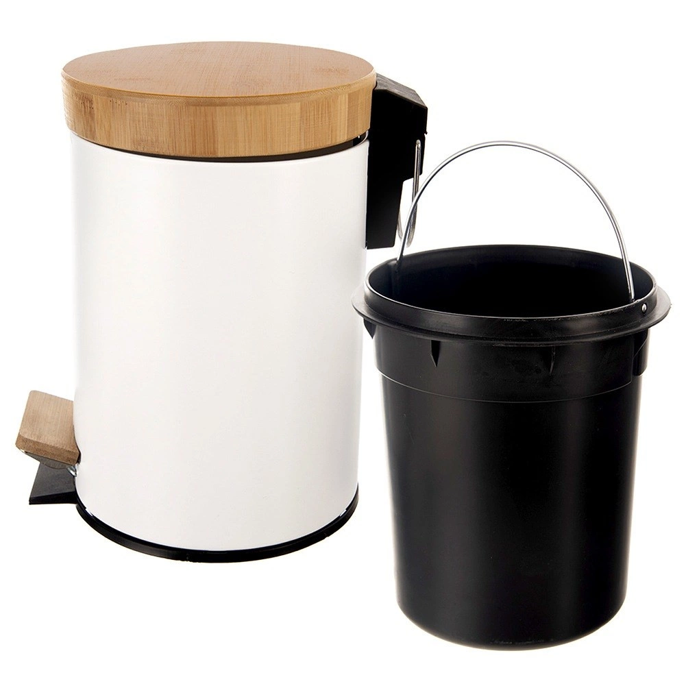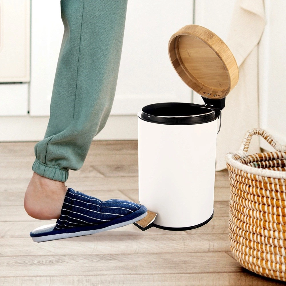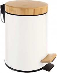 Kompaktní odpadkový koš o objemu 3 l v elegantním bílém provedení s bambusovým víkem a pedálem se skvěle hodí do koupelny, kanceláře či ložnice. Tiché a hygienické otevírání nožním pedálem, vyjímatelná vnitřní vložka pro snadné vysypávání a moderní minimalistický design pro každé prostředí.