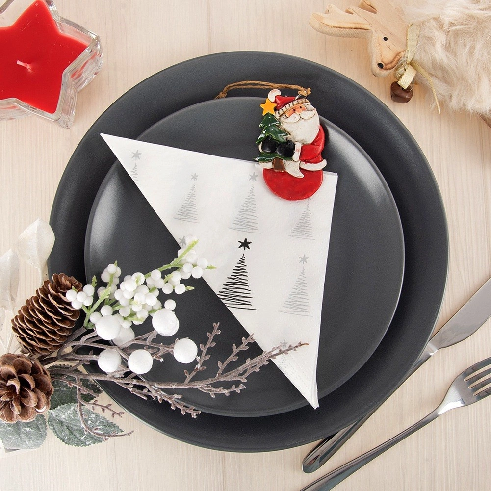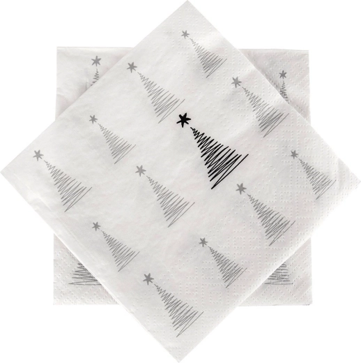 Vneste na sváteční tabuli styl a pohodlí s bílými papírovými ubrousky s decentním potiskem vánočních stromečků. Díky trouvrstvé struktuře jsou ubrousky příjemně měkké, ale zároveň odolné a velmi savé – skvělé pro rodinné večeře, oslavy i návštěvy.