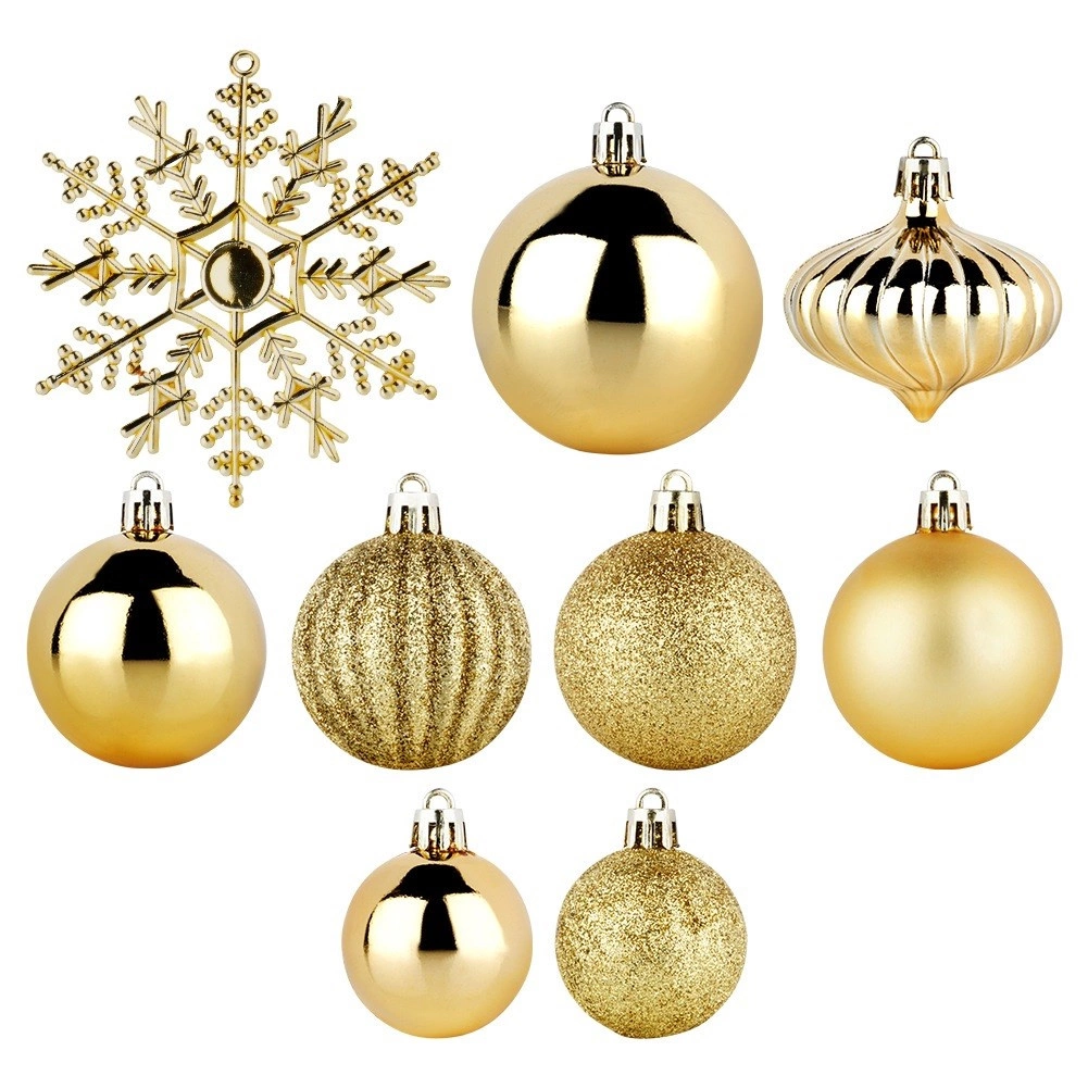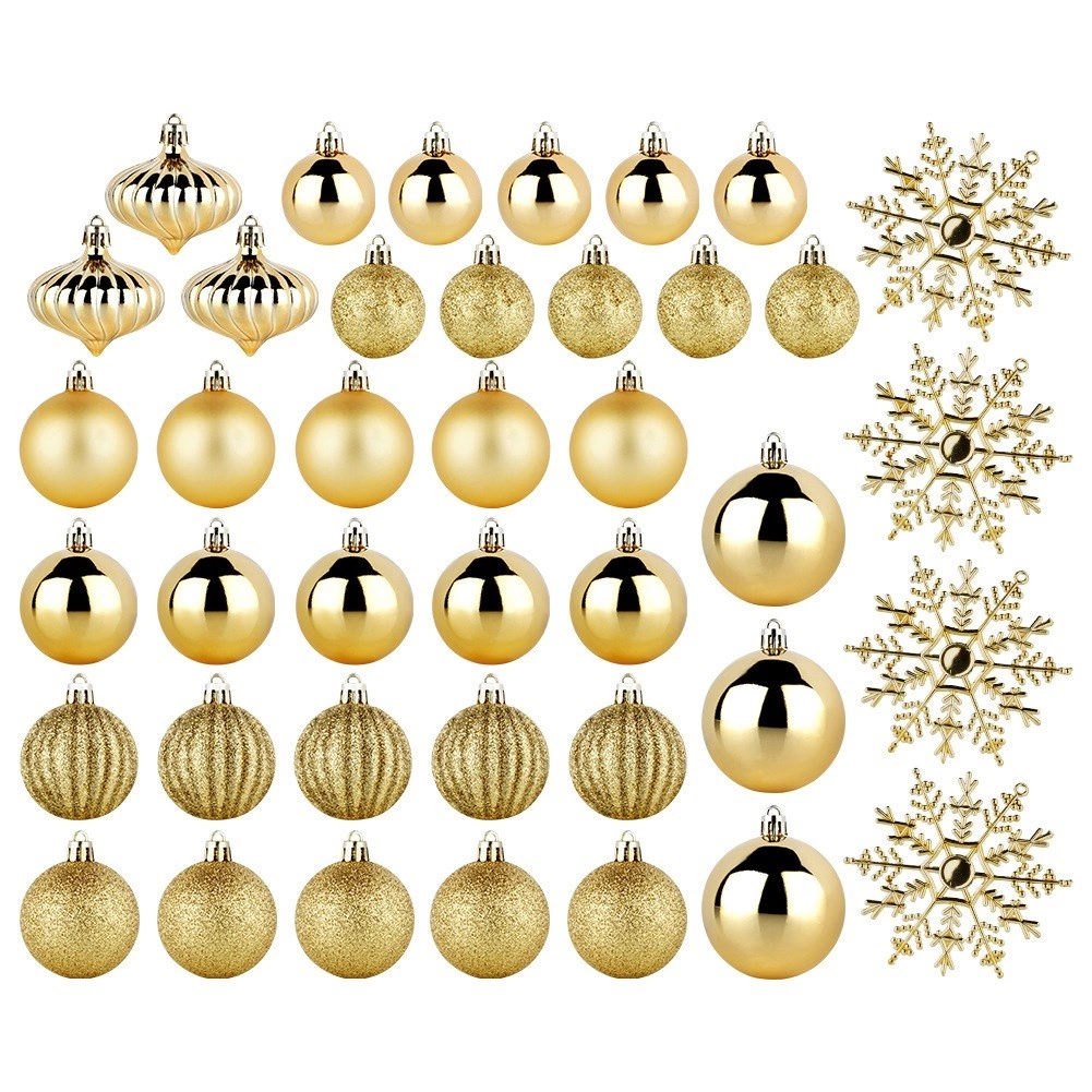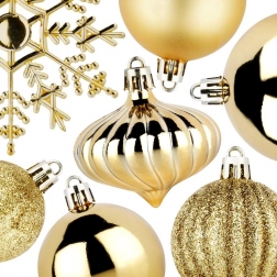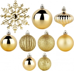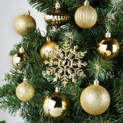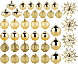 Balíček zahrnuje 40 baněk (4, 5 a 6 cm) a 4 sněhové vločky 10 cm, včetně šňůrek pro snadné zavěšení.